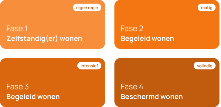 Wij betreft wonen werken we met verschillende fases, zodat we kunnen meten wat de feitelijke behoefte is en maatwerk kunnen bieden wat de cliënt nodig heeft.