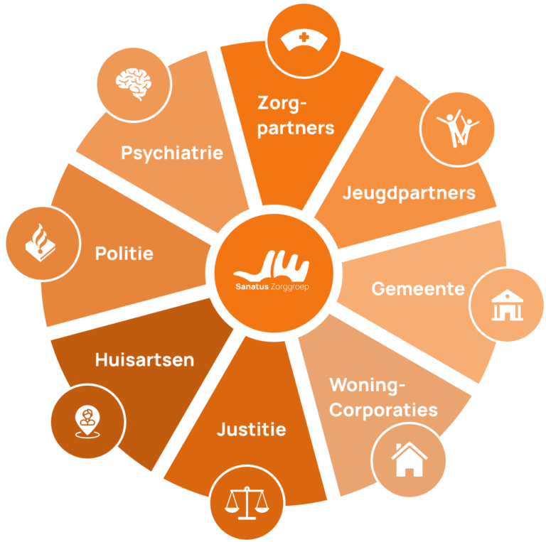 Omdat wij de verbindende schakel zijn tussen onze partners, houden wij de regie over het hele proces. Dit stelt ons in staat om de samenwerking te stroomlijnen en ervoor te zorgen dat iedere partner zijn specifieke rol vervult. Het resultaat is dat onze cliënten altijd de meest effectieve en geïntegreerde ondersteuning krijgen, precies op het moment dat zij die nodig hebben.